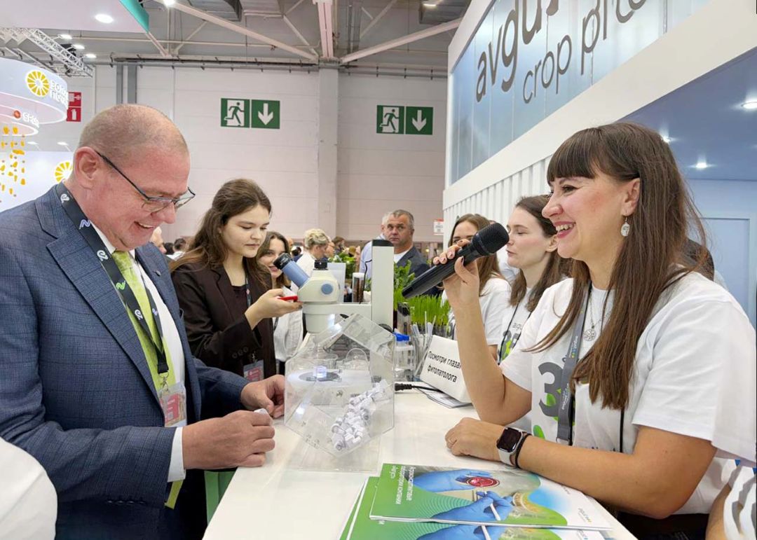 На стенде «Августа» D 20 03 специалисты компании и ее агроконсалтинговых лабораторий общаются с партнерами, консультируют земледельцев о технологиях защиты сельхозкультур и знакомят с новыми препаратами. О текущем развитии «Августа» и планах компании журналистам рассказывают генеральный директор ГК «Август» Александр Усков и генеральный директор АО Фирма «Август» Михаил Данилов.