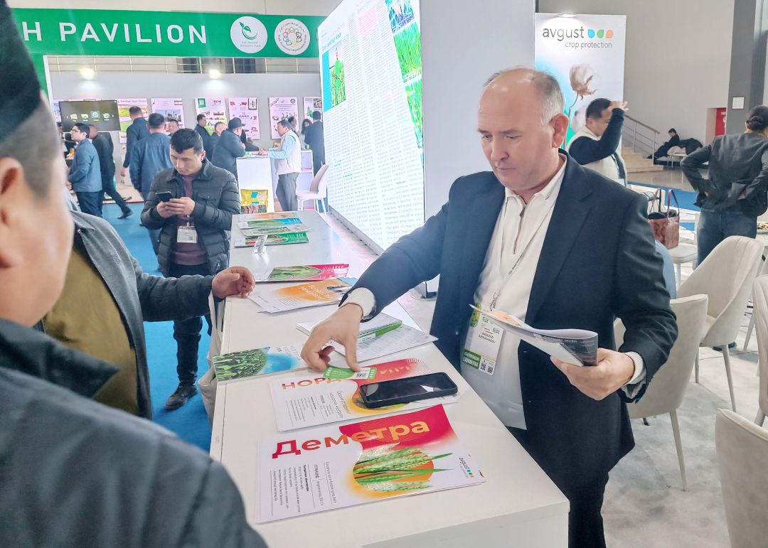 У «Августа» в республике представлено более 35 препаратов для эффективной защиты широкого спектра культур. О них и об агротехнологиях на стенде фирмы «августовцы» рассказывали земледельцам. Гостей приветствовали специалисты «Август-Азия» и «SamAgro Center» (генерального партнера в фирмы в Узбекистане), а также советник по маркетингу Сергей Косырев, руководитель группы маркетинга и технологического сопровождения Станислав Ким и руководитель группы администрирования продаж Елена Юшкина.