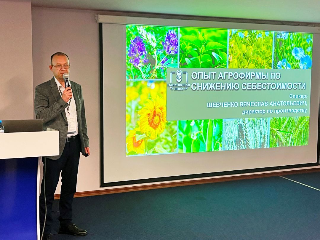 Директор по производству АО «Агрофирма Павловская нива» Вячеслав Шевченко рассказал участникам, как компания реагирует на изменения рынка и поделился способами снижения себестоимости продукции.