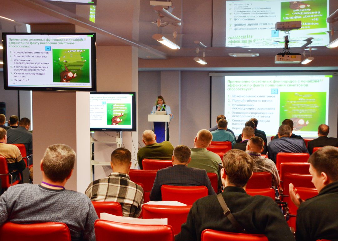 После участники семинара прослушали выступления руководителя селекционно-семеноводческого центра агрофирмы Ивана Рылькова и его заместителя Ульяны Пресняковой. Они рассказали о важности выбора конкретного сорта для различных направлений бизнеса, об этапах первичного семеноводства на базе центра, а также продемонстрировали результаты сортоиспытания зерновых и масличных культур за три года, которые в т. ч. включали такие параметры как урожайность, содержание белка, продолжительность вегетации и устойчивость к полеганию.