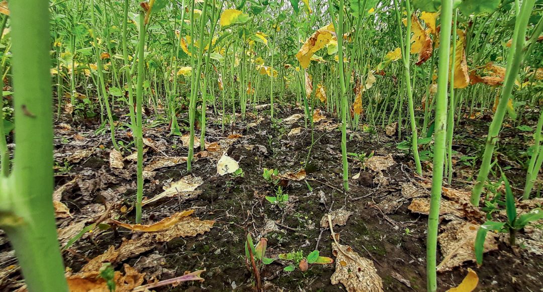 Препарат продолжал действовать и в процессе вегетации: в фазе семядолей его эффективность составила 100 % против церкоспороза и 75 % – против фузариоза. К моменту развития первого тройчатого листа она оставалась на уровне 33,5 %, но результаты применения Рондаша были заметны даже в фазе образования бобов (фото 5 и 6)».