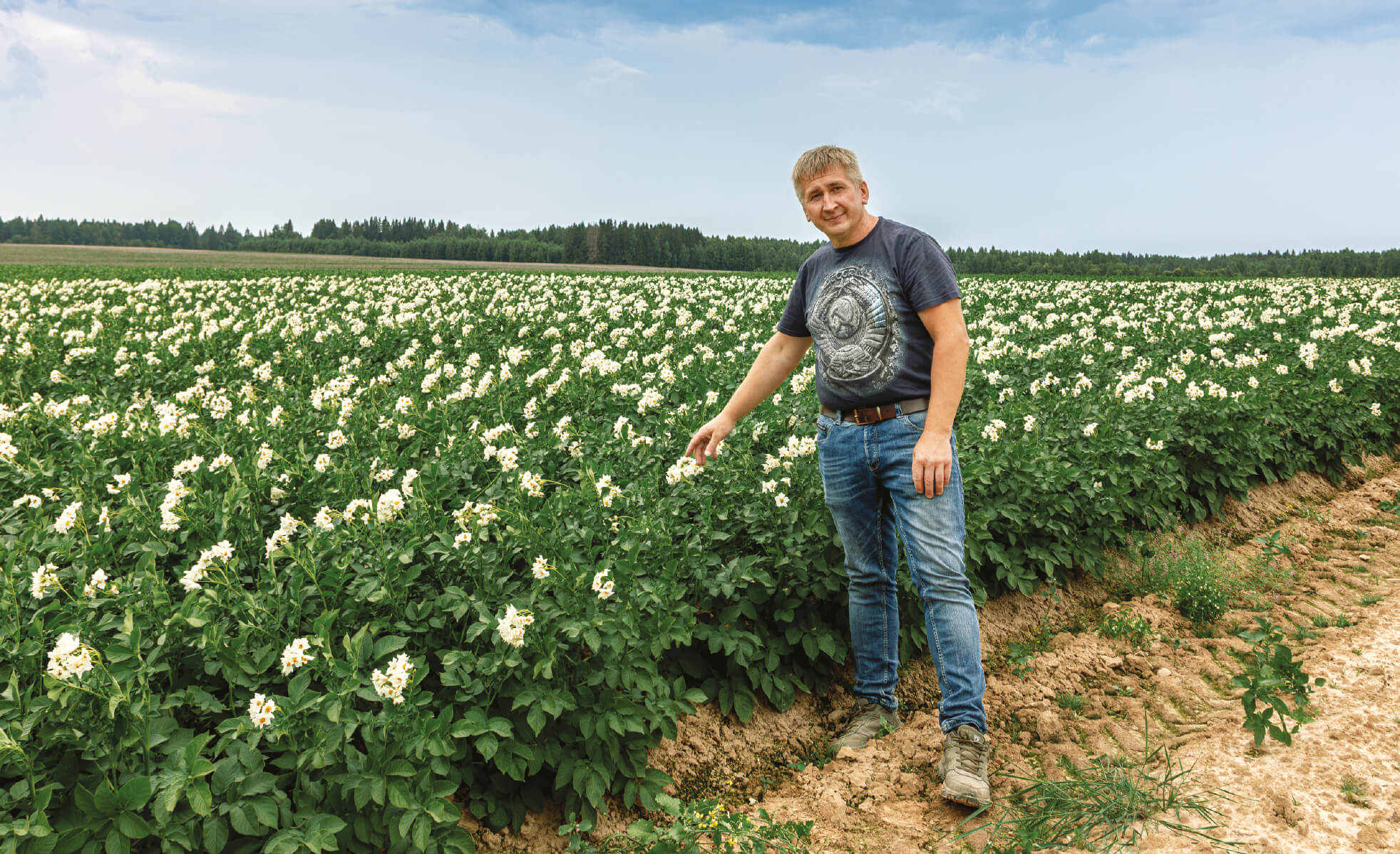 А. Новожилов на поле картофеля сорта Королева Анна