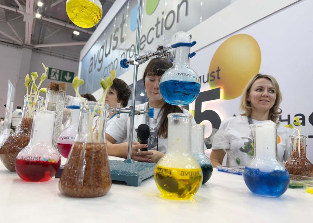 На стенде «Августа» D 20 03 специалисты компании и ее агроконсалтинговых лабораторий общаются с партнерами, консультируют земледельцев о технологиях защиты сельхозкультур и знакомят с новыми препаратами. О текущем развитии «Августа» и планах компании журналистам рассказывают генеральный директор ГК «Август» Александр Усков и генеральный директор АО Фирма «Август» Михаил Данилов.