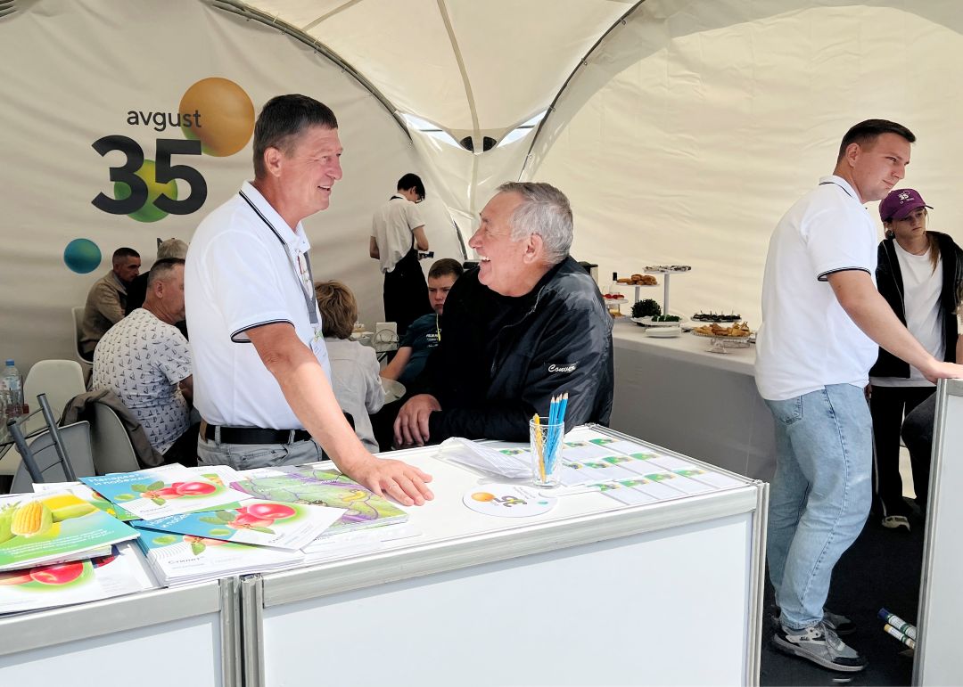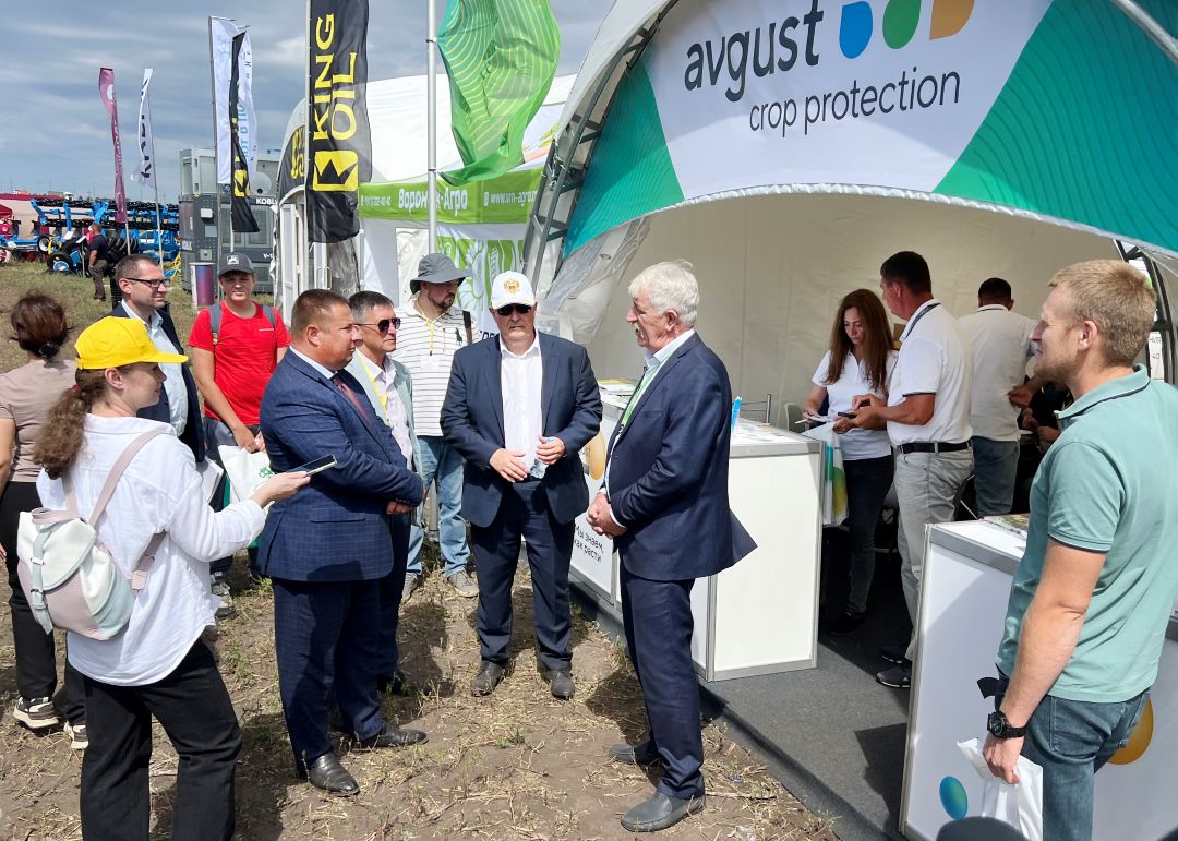 Стенд «Августа» посетил заместитель председателя правительства Саратовской области – министр сельского хозяйства региона Роман Ковальский. Он пообщался с главой представительства компании в регионе Владимиром Чикмасовым о развитии фирмы и о перспективах импортозамещения в отрасли ХСЗР.