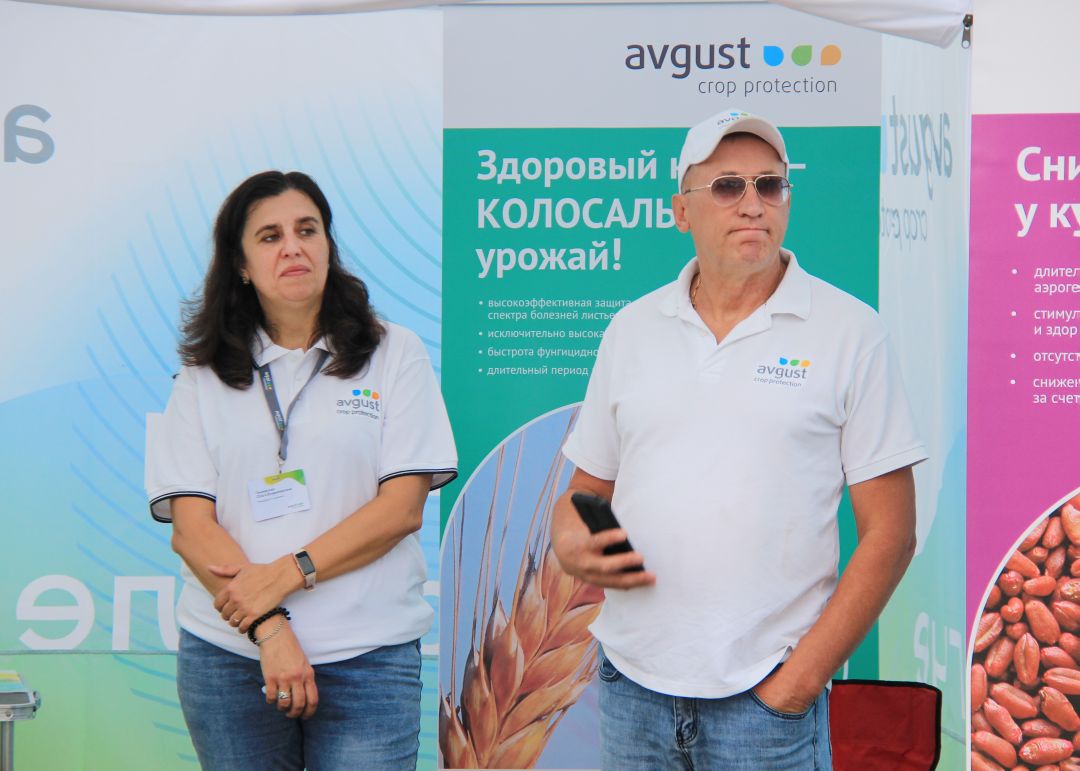 На полигоне Александр Рябцев вместе со студентами продемонстрировали более 40 сортов зерновых, зернобобовых, масличных культур, кукурузы, картофеля и гречихи, защищенных «августовскими» препаратами.