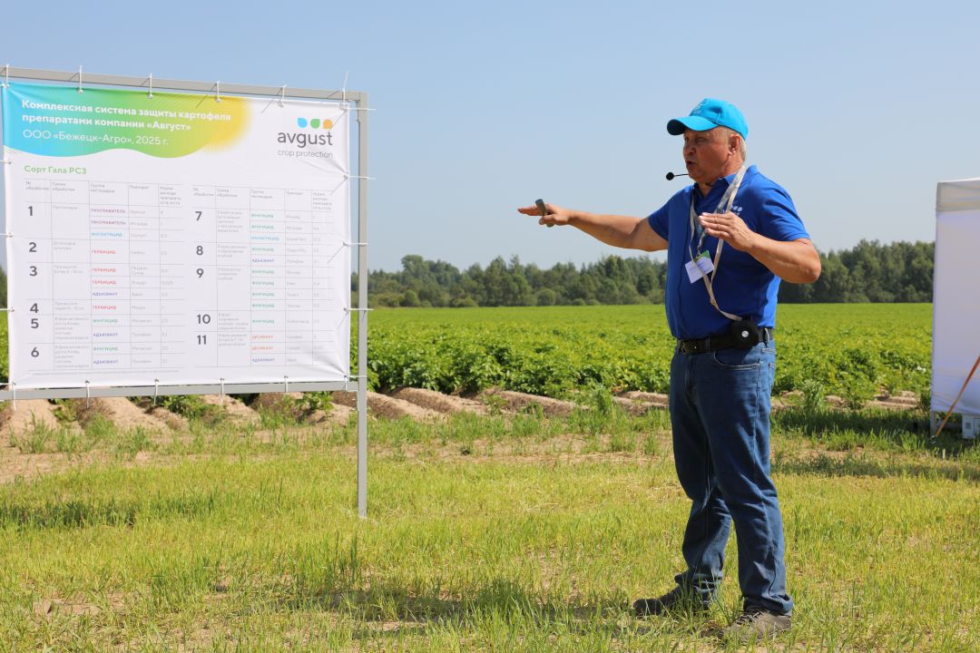 1 августа «Август» провел «День поля» в ООО «Бежецк Агро» Тверской области. Здесь встретились более 120 картофелеводов – фермеры и сотрудники сельхозпредприятий из разных регионов страны. Они осмотрели делянки с испытаниями разных сортов и схем питания и защиты, оценили работу техники для возделывания культуры и пообщались с единомышленниками. Гостей приветствовал заместитель главы администрации Бежецкого района Тверской области Геннадий Метлин. Модерировал мероприятие менеджер по ключевым клиентам представительства «Августа» по Центральному и Северо-Западному региону Юрий Дьяконов.