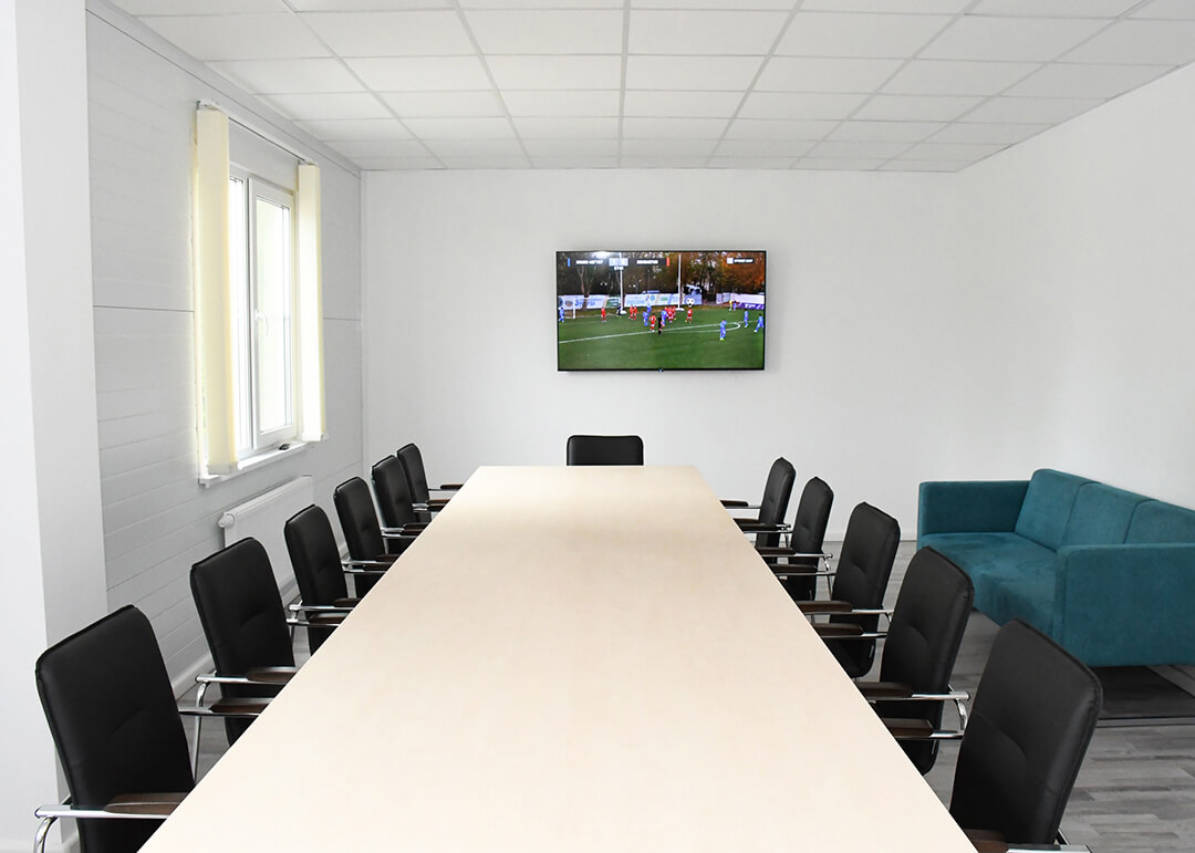 Новое МФЗ площадью более 700 кв. м. оборудовано раздевалками, медицинским кабинетом, судейской, помещением для антидопингового контроля, залом для пресс-конференций и др. Также возведены два КПП, дополнительные площадки под трибуны. На входе установлены турникеты и рамки металлодетектора. IT-специалисты настроили работу необходимого оборудования стадиона – видеокамер, информационного табло, звукового оповещения.