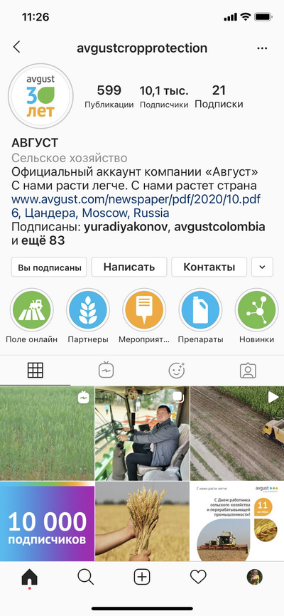 Аккаунт «Августа» в сети Instagram достиг 10 000 подписчиков!